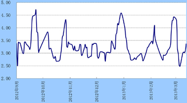 货币市场:上周央行公开市场净回笼资金440亿元人民币,呼应央行行长周小川明确表示的趋于稳健的货币政策。7天期回购利率上行88个基点至3.36%。