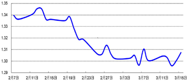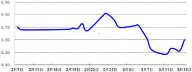 上周,由于市场对政策面和基本面持观望态度,人民币对美元交易清淡,每日波幅较窄,人民币对美元即期价格小幅上涨0.02%。