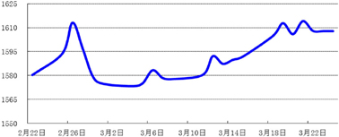 上周,因投资者担忧塞浦路斯能否获得欧盟救助,对避险资产需求增多,黄金价格录得两个月以来的最大周度涨幅,单周上升15.95美元/盎司至1607.79美元/盎司;此外,同因塞浦路斯事件所致,市场对欧洲原油需求前景担忧加剧,布伦特原油价格较前周周五下行2.42美元/桶至107.40美元/桶。