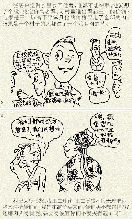 中国就像一个用百米冲刺速度跑马拉松的国家,一些人跑在最前面,还有很多人被远远拉在后面。无论收入分配的根源是什么,收入分配差距拉大,在一个市场经济的环境下,必然会造成富人对穷人的挤出效应,而且,更为要命的是,这种挤出效应往往是通过价格波动方式来实现的,因此并没有超越道德和法律的界限。在一个基本社会保障体系尚未完全建立、收入分配差距却在拉大的国度里,王二吃肉的故事会在各个领域中发生。