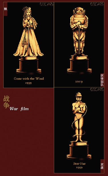 3月的专版刊登后,不少人跟我说,奥斯卡海报只占据一隅,有些可惜。后来一位从事海报研究多年的友人也建议我可以依此再做专版,便有了这个版面的诞生。第85届的奥斯卡致敬海报总共有85幅,由于版面限制不能逐一刊登。我们便粗粗做了些许分类,发现奥斯卡最为偏好的影片分别是战争历史片、人物/历史传记片、爱情(歌舞)片以及伦理片。