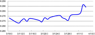 上周人民币兑美元中间价延续上升态势,并且周二击破6.2600整数关口,创汇改来新高,受清明节假期影响,上周只有三个交易日,中间价较前周上涨0.13%;欧元兑美元上涨1.33%,报1.2989美元。