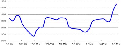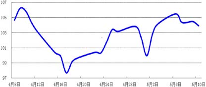 受4月高于预期的中国贸易数据,以及央行推进汇率改革的政策预期影响,人民币升值节奏加快,人民币兑美元即期价格本周累计升值0.2%。