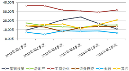图4 2012年第1季~2013年第2季主要投资领域2年期集合信托产品收益率走势