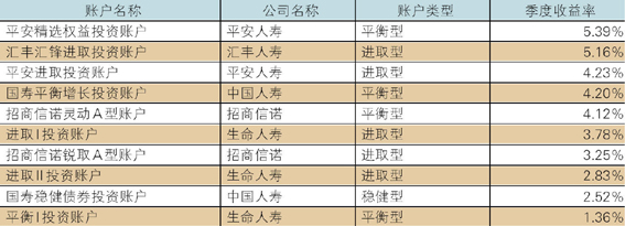 表4 2013年第2季度投连险投资账户收益表现TOP10