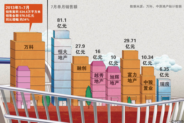 月份销售数据,万科、恒大、融创等房企销售额均同比上涨,部分房企土地储备充足。