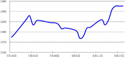 上周,因市场对美国经济迅速反弹的预期减退,国际金价显著上升61.90美元/盎司至1375.90美元/盎司,单周升幅达4.71%,为五周以来最大;此外,布伦特原油价格较前周周五小幅上升2.18美元/桶至110.40美元/桶。