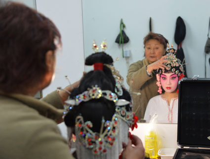 小红娘唱完了,撩开侧幕的帘子,去了后台。鼓点停了,演出结束。穿过游廊的时候,被一个给他拍照的小帅哥叫住了,回过头,嫣然一笑,相互留了QQ号,叮嘱到:“回头把照片发给我啊……”