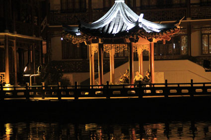 华灯初上,游船画舫慢悠悠地飘在凤城河上,夜雨筛落灯光,像是洒了一湖的金子。河畔的亭子间里,古乐队再次披挂上阵,乐声穿过雨雾,跳跃在水面上,舞蹈着,不紧不慢,不温不火,细致而琐碎,叫人念念不忘。