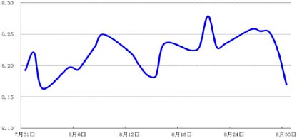 上周,人民币兑美元即期窄幅波动,8月即期累计走升0.15%,目前交易热情逐步消退,后期需关注外部环境和人民币中间价透露的监管层意图。