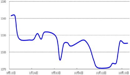 上周周初,由于美国国会关于结束财政僵局的谈判并未取得进展,避险需求带动国际金价上涨,最高收于1319.09美元/盎司;周四,在美国政府就债务上限问题达成协议后,国际金价承压,小幅回落至1315.75美元/盎司。