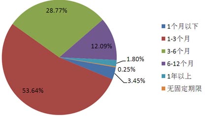 从投资期限来看,1个月(含)以下期产品发行了109款,较上月减少29款,市场占比下降0.89个百分点至3.45%;1个月至3个月(含)期产品发行了1695款,较上月减少83款,市场占比下降2.26个百分点至53.64%;3个月至6个月(含)期产品发行了909款,较上月增加157款,市场占比上升5.13个百分点至28.77%,6个月至1年(含)期产品发行了382款,较上月减少85款,市场占比下降2.59个百分点至12.09%;1年以上期产品发行了57款,较上月增加13款,市场占比上升0.42个百分点至1.80%;无固定期限理财产品发行了8款,较上月增加6款,市场占比上升0.19个百分点至0.25%。从发行数量和市场占比的变化情况来看,3个月至6个月(含)期产品环比上升幅度最高,侧面体现出银行锁定跨年、跨春节资金的意愿正在增强。(图3)