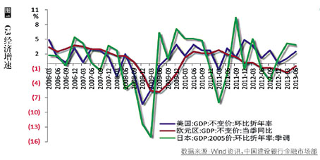 受新兴市场经济体减速影响,日本出口复苏势头放缓,相应也影响其3季度的经济增速,我们预计日本3季度GDP环比折年率将由2季度的3.6%降至1.6%;同时日本的通胀水平已连续4个月增长,显示持续15年之久的通缩情况正在得到持续改善,另外安倍政府宣布2014年4月开始上调消费税率至8%,但该政策对于经济的拖累在明年下半年才会显现。(图1)