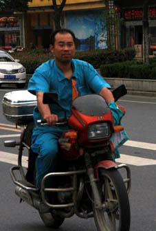 永安洲镇上骑车回家的工人。苏中经济的崛起使许多当地人选择回到家乡的工厂做工。图/公孙欠谀