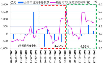银行间市场资金面将较11月小幅改善,7天回购利率中枢预计回落至3.8%-4.3%