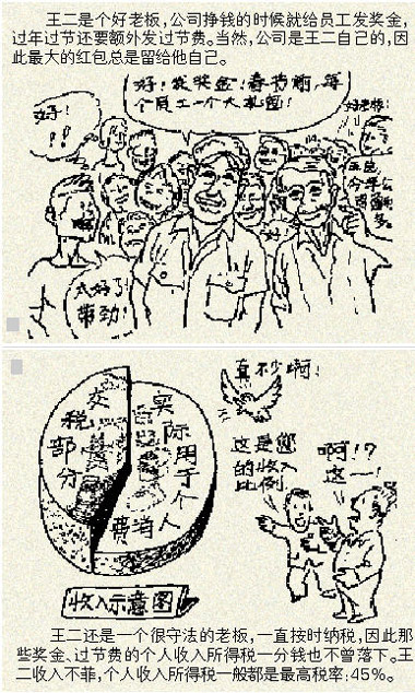 王二开公司的故事,重点想讨论的是应不应该对实物福利,或者说非货币福利征收个人收入所得税?答案是:应该。从公平的角度来分析,理由有二。一是不对实物福利征税是对按章纳税的公司和个人的不公平,任何用现金发福利的公司都比发实物福利的公司面临更高的税负,就像被大家笑话的王二;二是不对实物福利征税,很可能会使得收入分配状况更加恶化。不对实物福利收税,最后得益的是高收入阶层。是否征收,涉及一个税收体系是否公平合理的问题。