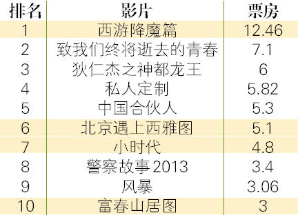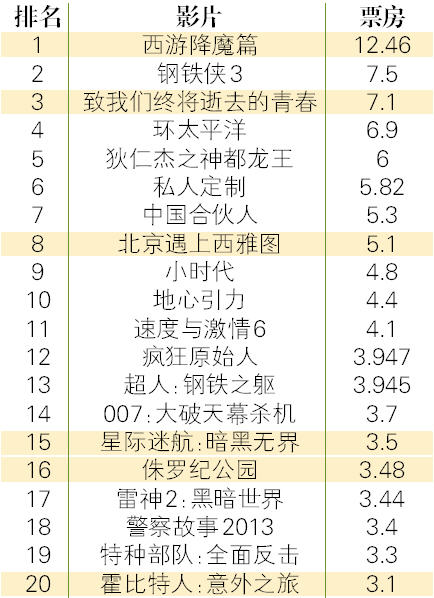表1 2013年中国电影票房排行 单位:亿人民币
