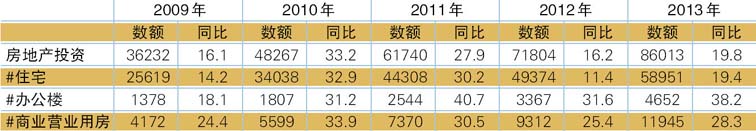表2 2009-2013年全国房地产开发投资情况 单位:亿元,%