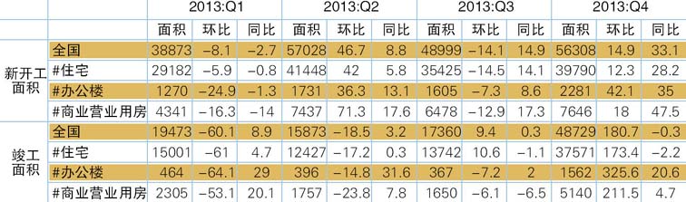 2012年全年房屋新开工面积177334万平方米,2013年全国房屋新开工面积201208万平方米,同比增长13.5%(2012年为同比下降7.3%)。特别是2013年12月份,单月竣工面积相当于上半年竣工面积总和,这里一方面有统计因素,另一方面也与企业项目竣工节点集中在四季度有关。