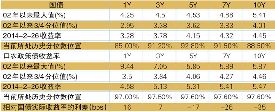 表1 当前国债和政策性金融债收益率的历史位置
