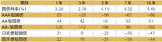 表2 不同债券实际利率2比较(较国债,bps)