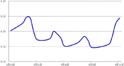 上周,美元对人民币即期市场成交价呈现宽幅波动,周五收盘于6.2113元,与前一周相比变动不大,但交投中枢略微上移。目前,市场对人民币后市走势预期仍有分化,需进一步关注人民币中间价提供的方向性指引。