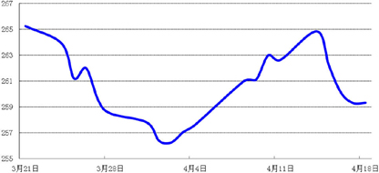 上周,因陆续公布的三月份及一季度经济数据好坏参半,市场无法从中得到方向性指引,企业对人民币后市走势预期仍有分化,人民币对美元即期市场成交价呈窄幅波动,当周累计贬值0.21%,周五收于6.2242元。