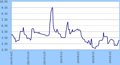 货币市场:上周,受央行公开市场净回笼资金以及国库现金定存到期影响,银行间市场资金面略显紧张,主要质押式回购品种加权利率出现不同程度的上行,其中7天回购利率继续上行69个基点至3.51%。