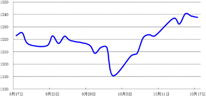 上周,因美国股市持续震荡,令市场投资者对全球经济忧虑升温,提振了黄金的避险需求,国际金价周五收盘于1237.69美元/盎司,较前一周上涨1.20%