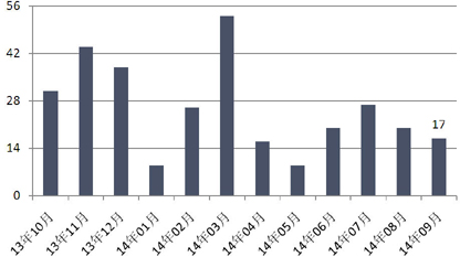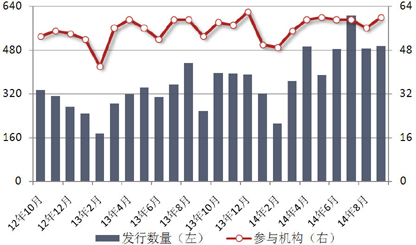 9月银行理财产品发行数量环比小幅上涨,3-6个月期产品市场占比增幅较大。9月各期限SHIBOR价格均表现为下跌走势,可以看出市场资金面继续保持宽松趋势,并未出现季末效应。银行理财产品的收益率与SHIBOR走势较为吻合,所有期限类型产品的平均预期收益率环比均出现下滑。其中1个月以下期限类型产品的平均预期收益率环比跌幅最大。存款偏离度使日均考核加强,理财产品提价时间或将从月末提前至月中;中信信托借众筹突破私募限制9月末与百度等联合发布国内首个电影大众消费平台——“百发有戏,一期产品为汤唯、冯绍峰主演的影片《黄金时代》。来自普益财富