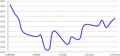 上周,受实需支撑,加之中国央行意外宣布降息,且欧洲央行行长德拉吉强烈暗示,欧洲央行已准备好扩大QE,国际金价上涨,周五收盘于1201.09美元/盎司,较前一周上涨1.11%。