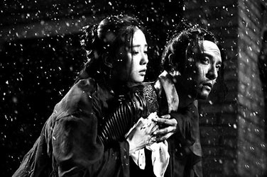 以上,张艺谋统统剪去!在这短短的两个小时里,老谋子舍去了所有故事的来龙去脉,甚至舍去了构成故事的人物本身,只留下三个人,描述了一次逃亡以及此后的相见不识。就像一出舞台独幕剧,纯粹而残酷地描绘着命运的吊诡!观众不是坐在影院里,而仿佛置身小剧场的池座中,伸手就可以触摸得到台上的那三个演员,引颈就可以听得到他们的呼吸,听得到他们在极简的布景前,演绎半生无奈而又悠长的一声长叹——