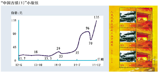 至于挂牌品种的表现就更加令人惊叹,像中国古镇(1小版张价格从年初跌破面值的11元飙升到135元,11倍升幅让人惊叹不已,金铜佛造像小版张由年初的14.5元狂涨至75元,涨幅为3.2倍,而2004年发行的人大小版张则从20元暴涨到280元,14倍的升幅同样令投资者大跌眼镜,2003年发行的晋祠彩塑小版张也从95元攀高至500元,纯涨幅高达4倍余。
