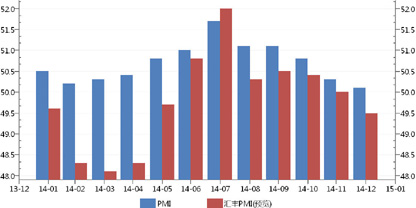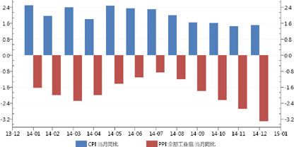 2015年,中国经济仍将受到增长速度换挡期、结构调整阵痛期和前期刺激政策消化期的三期叠加影响,宏观经济仍然面临较大下行压力。从已经公布的最新PMICPI、工业增加值、社会融资总额等经济金融数据看,尚未出现明显复苏信号,降低社会融资成本仍将是重要的政策目标。2014年年底召开的中央经济工作会议提出积极的财政政策要有力度,货币政策要更加注重松紧适度,更多的政策宽松措施值得期待。