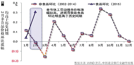 通胀:2月物价超预期回升同春节假期因素密切相关。结合春节消费的略显平淡,春节对物价产生影响的商贩服务业休假、消费者集中消费两个维度中,前者或影响更大(企业提早结业、推迟重新开业时间、乃至经营萎缩辞退员工等,导致大中城市临时性用工缺口延长)。进入3月,春节效应消褪后,蔬菜等食品价格或回落较快,而外来务工人员陆续返城、服务业陆续开业,也会平抑非食品价格上涨。预计一季度CPI同比涨幅在1.2%左右的低位。此外,针对猪肉价格问题,我们认为,从根本上看,国内生猪养殖业的产能淘汰和升级程度仍未达到适应新的市场需求态势的水平。需求下行的力量或将在后期猪肉供需较量中位居上峰。猪周期在今年乃至更长时期出现的概率愈发渺茫,猪肉价格主导居民消费价格涨幅的时代或已一去不复返。(图1