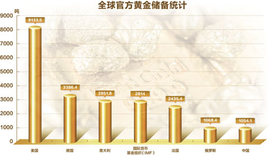 相比很多国家,中国黄金占外汇储备比例偏低。中国持有的黄金占其外汇储备总额的比例,远低于10%左右的全球平均水平。根据世界黄金协会(WGC20147月公布的数据,中国目前黄金储备只有1054.1吨,占外汇储备的比重仅为1.6%。而德国是71.7%,美国高达74.7%,连俄罗斯和印度等新兴国家也都在5%以上。2014年第四季墨西哥为2.4%,澳大利亚为5.7%,印度为6.7%,俄罗斯为12.1%
