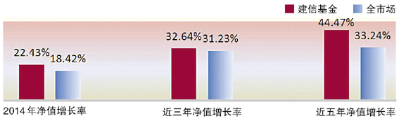 对于建信基金来说,过去的十年值得庆祝与纪念。在这十年间,建信基金从基金行业的新兵成长为大型基金管理公司,谱写了资产管理规模大幅增长、投资业绩大幅提高、收入稳步提升的新篇章。截至2014年年底,建信基金资产管理规模达到3613亿,较2013年末增加2603亿,增幅达258%;旗下权益类和固定收益类基金在2014年的平均净值增长率分别达到28.63%和22.43%,在近70家可比基金公司中分别位居前30%和前26%,并涌现出了一批业绩位居前10的明星基金;2014年公司还实现了1.65亿元的净利润,较上一年同期增长25.34%,创近5年最好水平。