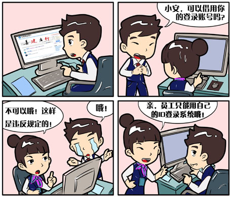 随着互联网金融深入消费者生活的方方面面,以及金融业自身信息化的持续进步,金融业对信息技术的依赖将越来越大,对信息安全保障工作的要求也将更高,安全需要专业的力量,也需要用户的合规配合。本版我们将通过用户使用和信息使用等图画版专题,让用户在了解建设银行安全管理的同时,做好自我安全管理。