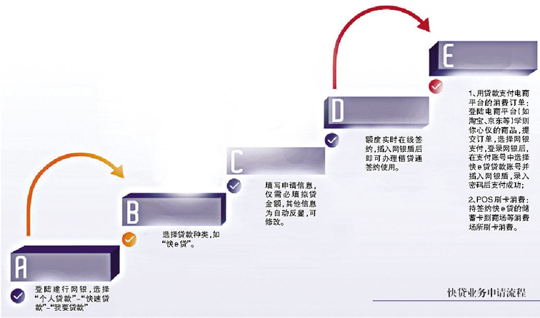 POS刷卡:在国内POS机刷卡消费时,使用“快e贷”在线签约时选定的建行储蓄卡。