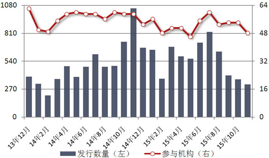 从资金运用领域看,基础设施领域产品发行117款,占比为36.91%;房地产领域产品发行48款,占比为15.14%;工商企业领域产品发行38款,占比为11.99%;金融领域产品发行28款,占比为8.83%,;证券投资领域产品发行15款,占比为4.73%;其他领域产品发行71款,占比为22.40%。虽然11月证券市场进一步反弹,但我们依然看到证券投资领域产品发行量下降,印证了之前的判断。基础设施领域数量占比的上升,说明市场风险偏好依然在下降。