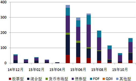 11月,阳光私募发行数量录得11款,环比增加1款,仍处于低位。值得提及的是,本月成立的阳光私募较多,达到360款,环比上增加252款。但我们认为,随着对结构化阳光私募的新政,今后数月阳光私募产品的发行量降低或是大概率事件。(图7)