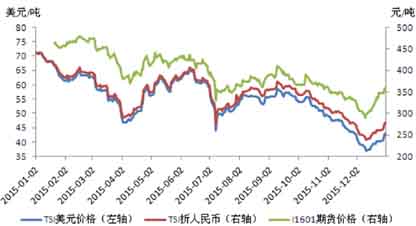 基于供过于求的基本面,我们对2016年铁矿石和钢铁价格维持下跌预期,钢、矿价格寻底之路还将延续。从波动性来看,铁矿石已经从高点下跌三分之二有余,未来市场下跌空间有限、波动加剧,在耐心等待市场反转时点的同时,做空也需更加谨慎。预计国际铁矿石价格指数TSI全年波动区间分别为[30 50]美元/吨,国内铁矿石期货活跃合约区间为[250, 450]/吨。