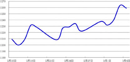 上周,在地缘政治风险加剧以及大宗商品价格强势上涨的支撑下,国际金价上涨,并触及13个月来高位,周五收盘于1259.06美元/盎司,较前一周上涨3.02%。