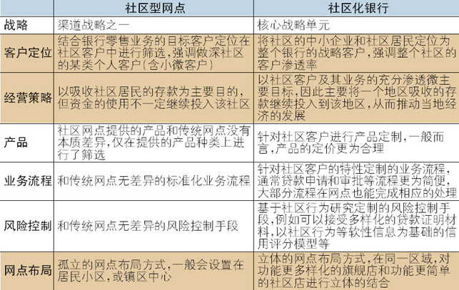 “社区型网点”和“社区化银行”策略的内容举例对比