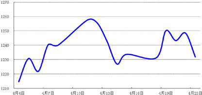 上周,受美元走势影响,国际金价先涨后跌,周五收盘于1231.91美元/盎司,较前一周微跌0.14%。
