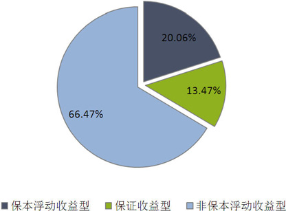 从收益类型来看,保证收益型产品发行了1003款,环比增加27款,市场占比上升0.04个百分点至13.47%;保本浮动收益型产品发行了1494款,环比减少46款,市场占比下降1.12个百分点至20.06%;非保本浮动收益型产品发行了4949款,环比增加197款,市场占比上升1.08个百分点至66.47%。(图1