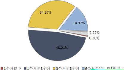 从投资期限来看,1个月以下产品发行了28款,环比减少23款,市场占比下降0.33个百分点至0.38%1-3个月产品发行了3575款,环比增加27款,市场占比下降0.80个百分点至48.01%3-6个月产品发行了2559款,环比增加194款,市场占比上升1.83个百分点至34.37%6-12个月产品发行了1115款,环比减少17款,市场占比下降0.60个百分点至14.97%1年以上产品发行了169款,环比减少3款,市场占比下降0.10个百分点至2.27%。(图3