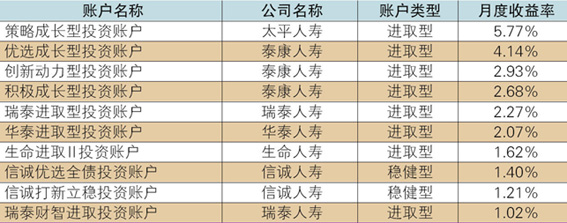 投连险账户业绩表现:月度平均收益率为-0.26%,太平人寿策略成长型投资账户表现最佳