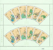 小型张也有所回升,但涨幅明显逊于套票,如2015年发行的挥扇仕女图西游记(1包公抗战胜利70小型张分别在26.5元、27元、18元和16.8元成交,没有一个品种的涨幅是超过50%的。而其他年份的小型张也是如此,尽管整体攀升,但升幅远落后于同期套票,像龙虎山颐和园红楼梦(1孔雀捣练图小型张分别上扬到12元、15元、35元、13元和27.5元,黄果树万国邮联丝绸之路龙门石窟桂花小型张分别微涨到15元、8元、18元、12.5元和22元,诸葛亮郑和下西洋黄河水利上海世博园十八大小型张也分别小升至32元、35元、41元、18元和20元,而桃花坞中国鸟第十二届全运会中国梦(3君子兰小全张则分别盘桓于65元、18元、12元、16.6元和25元附近。5月初亮相的抗战胜利70双连小型张在55元交易。