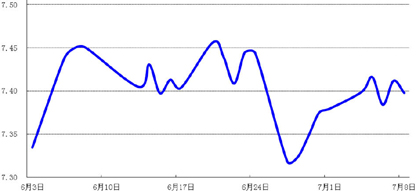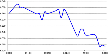 上周,因欧元和英镑持续走弱,美元走强,人民币对美元中间价走低,并于周三触及近五年半低位6.6857;即期市场成交价也跟随中间价走弱,最低触及6.6980,周五收于6.6881,较前一周贬值0.45%。